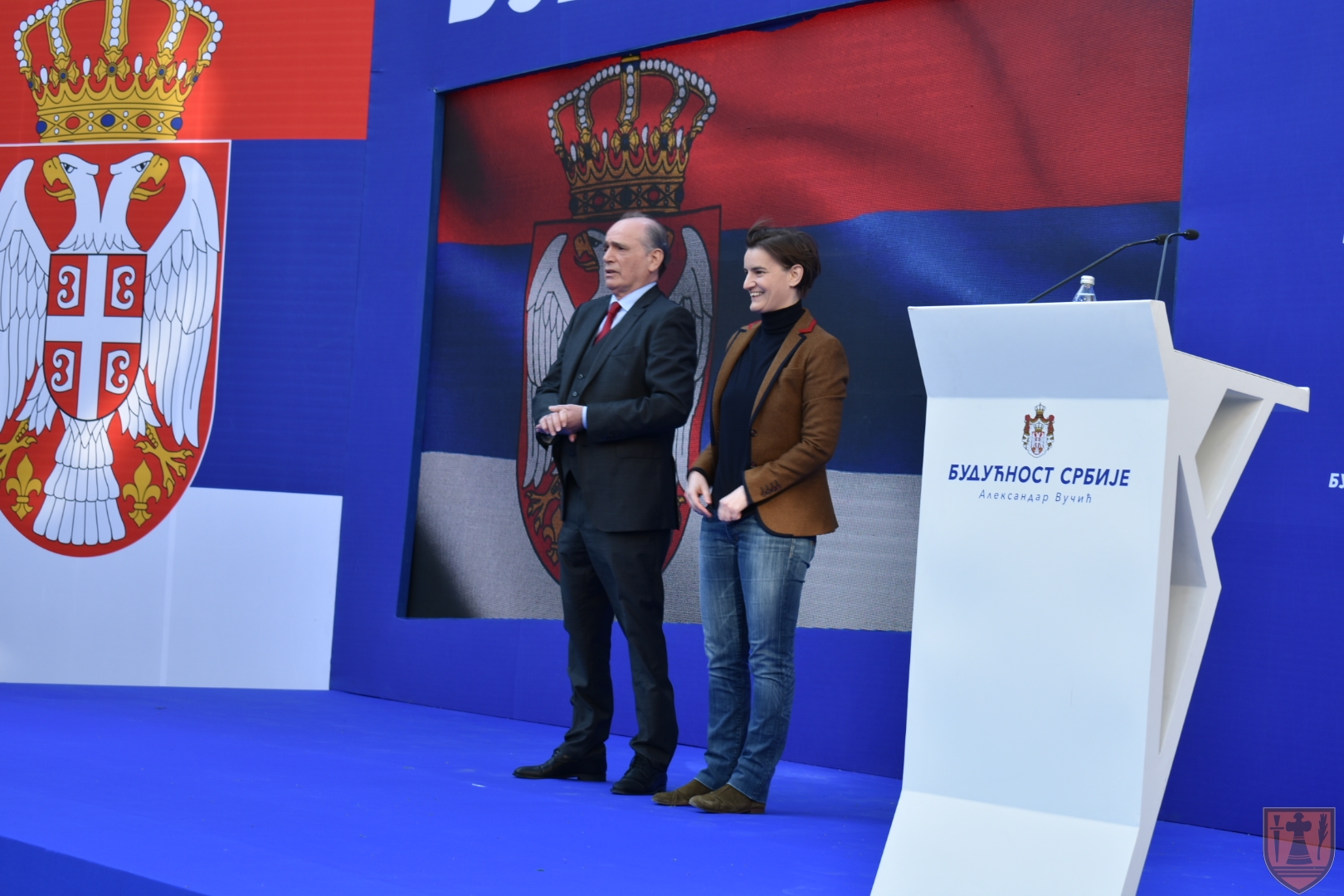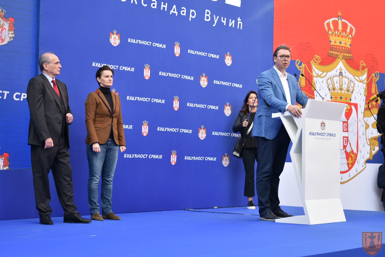 Након председнице Владе Републике Србије, Ане Брнабић и министра без портфеља задуженог за регионални развој и рад јавних предузећа Милана Кркобабића, окупљеним грађанима обратио се председник Србије Александар Вучић који је указао на пређашње догађаје и деловање опозиције која на недемократски начин покушава да наметне своју идеологију.